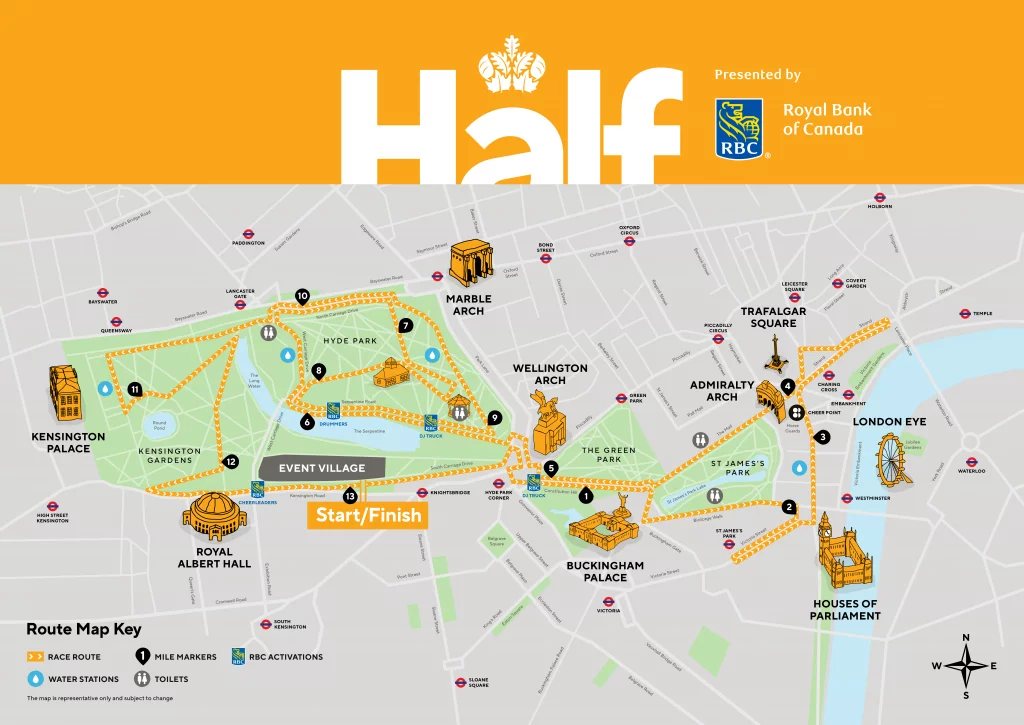 This year, the event is scheduled to take place on 8th October 2023. Participants will navigate a scenic 13.1-mile course through four of London’s royal parks: Hyde Park, Kensington Gardens, St James’s Park, and Green Park. The marathon is fully closed to traffic, allowing runners to enjoy a safe and peaceful environment while taking in iconic landmarks such as Buckingham Palace and the London Eye.