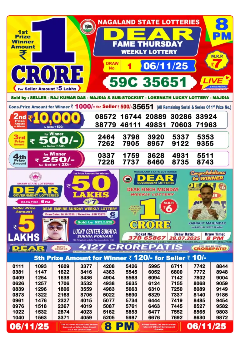 News Lottery Sambad Today: Latest Results and Updates 07.11.202503 mins Introduction Lottery Sambad is a highly popular lottery scheme in India, known for its large cash prizes and frequent draws….